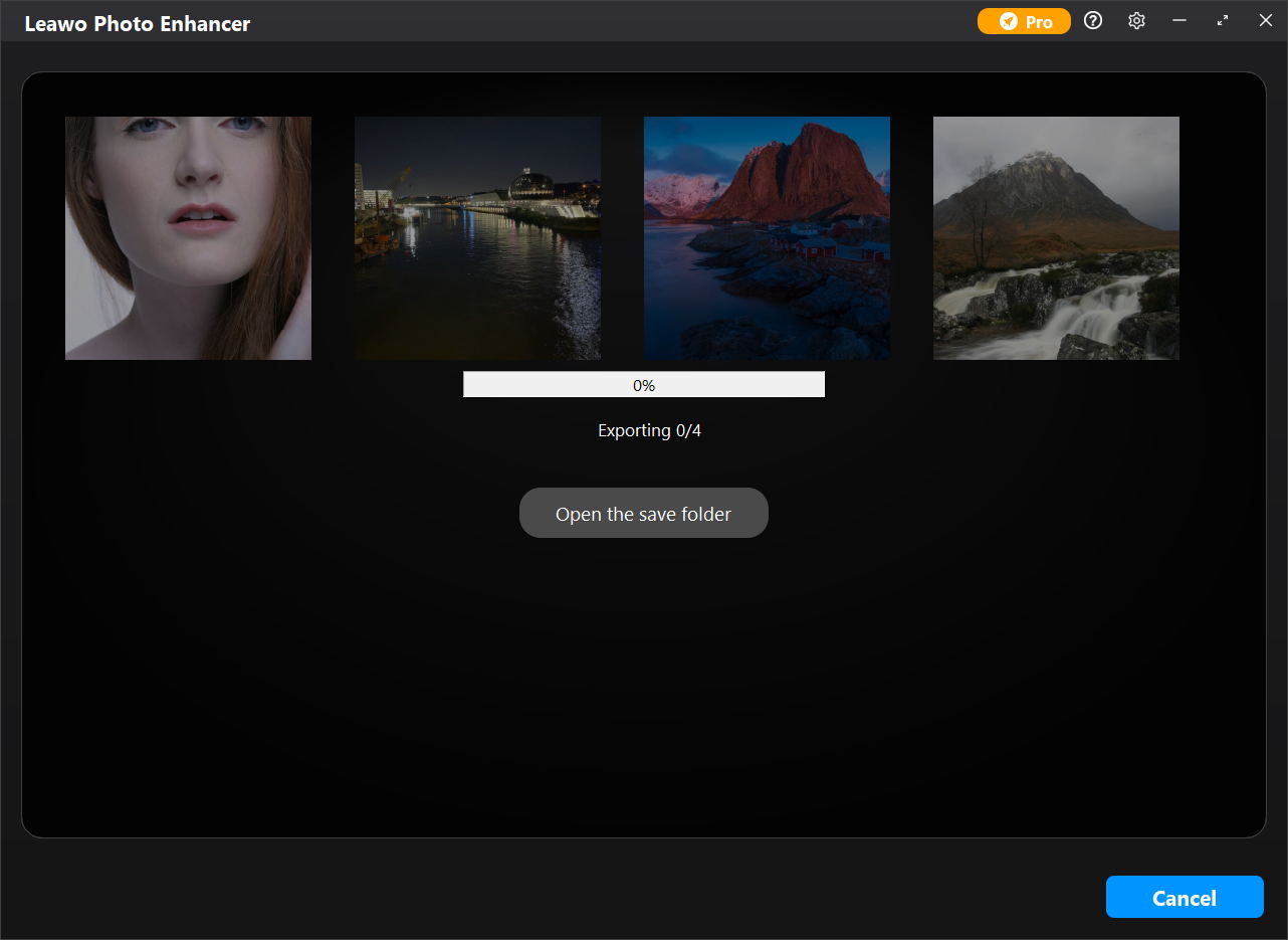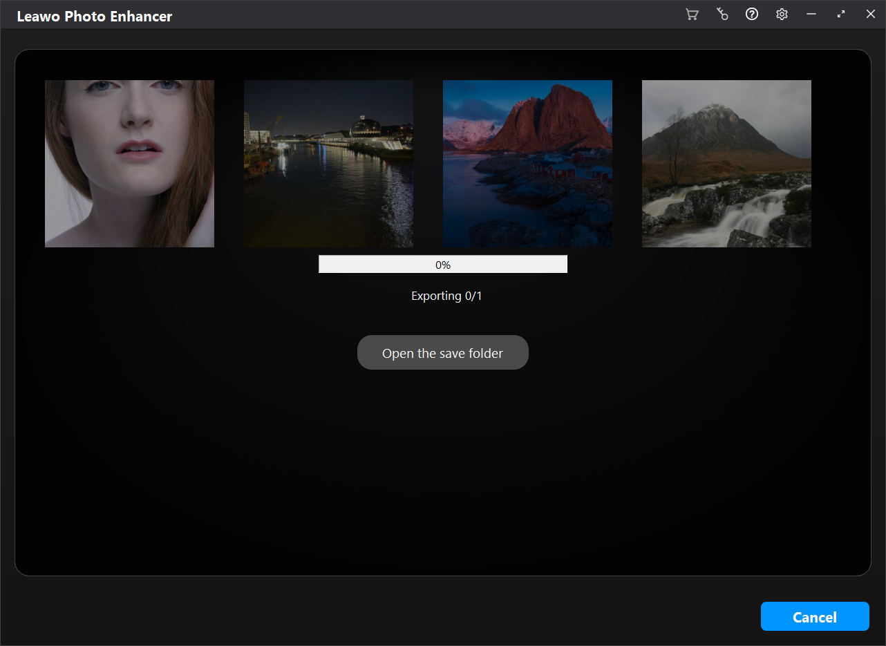 如果您已注册 Leawo Photo Enhancer,您将直接进入导出窗口,该窗口将通过进度条显示导出进度。
