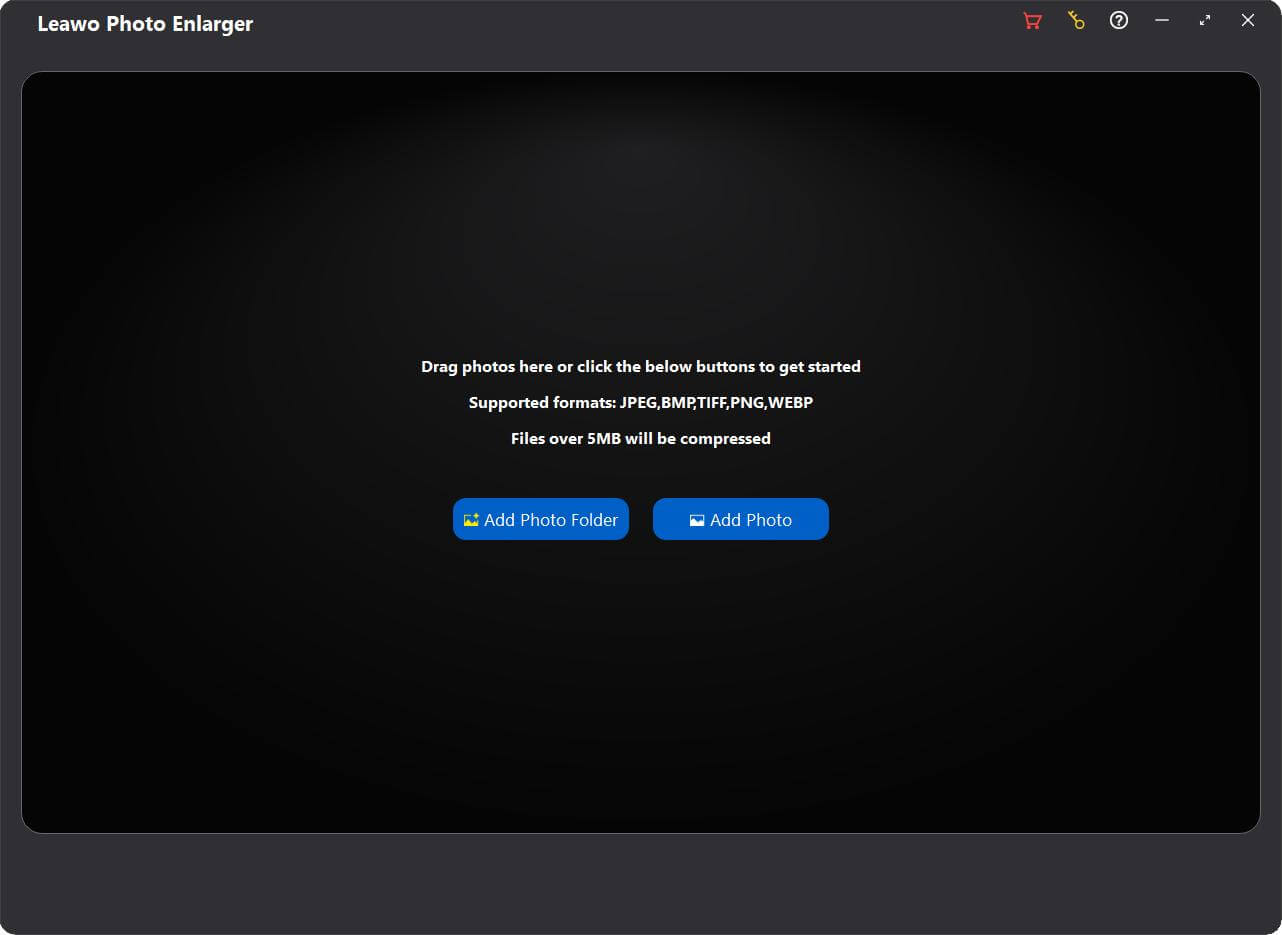 要使用此 AI 照片放大器放大照片,首先需要将源照片添加到 Leawo 照片放大机。开始 Leawo PhotoIns 并进入照片放大模块。然后,按照下面列出的任一方式添加要放大的照片: