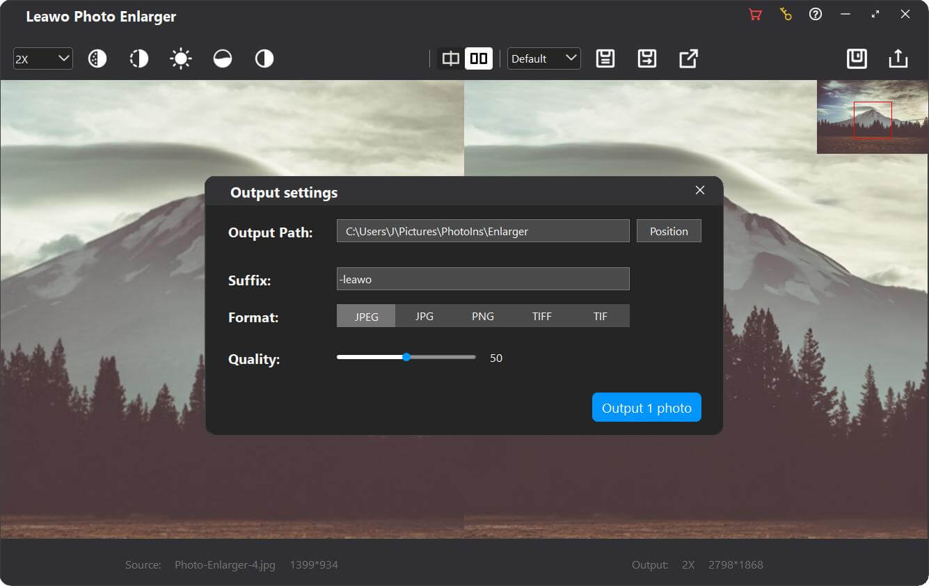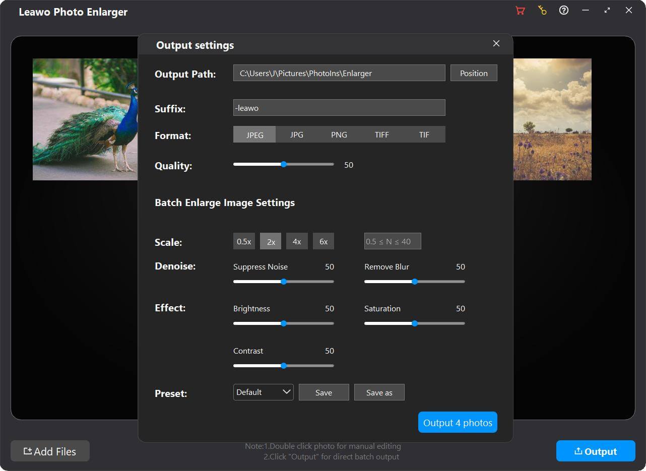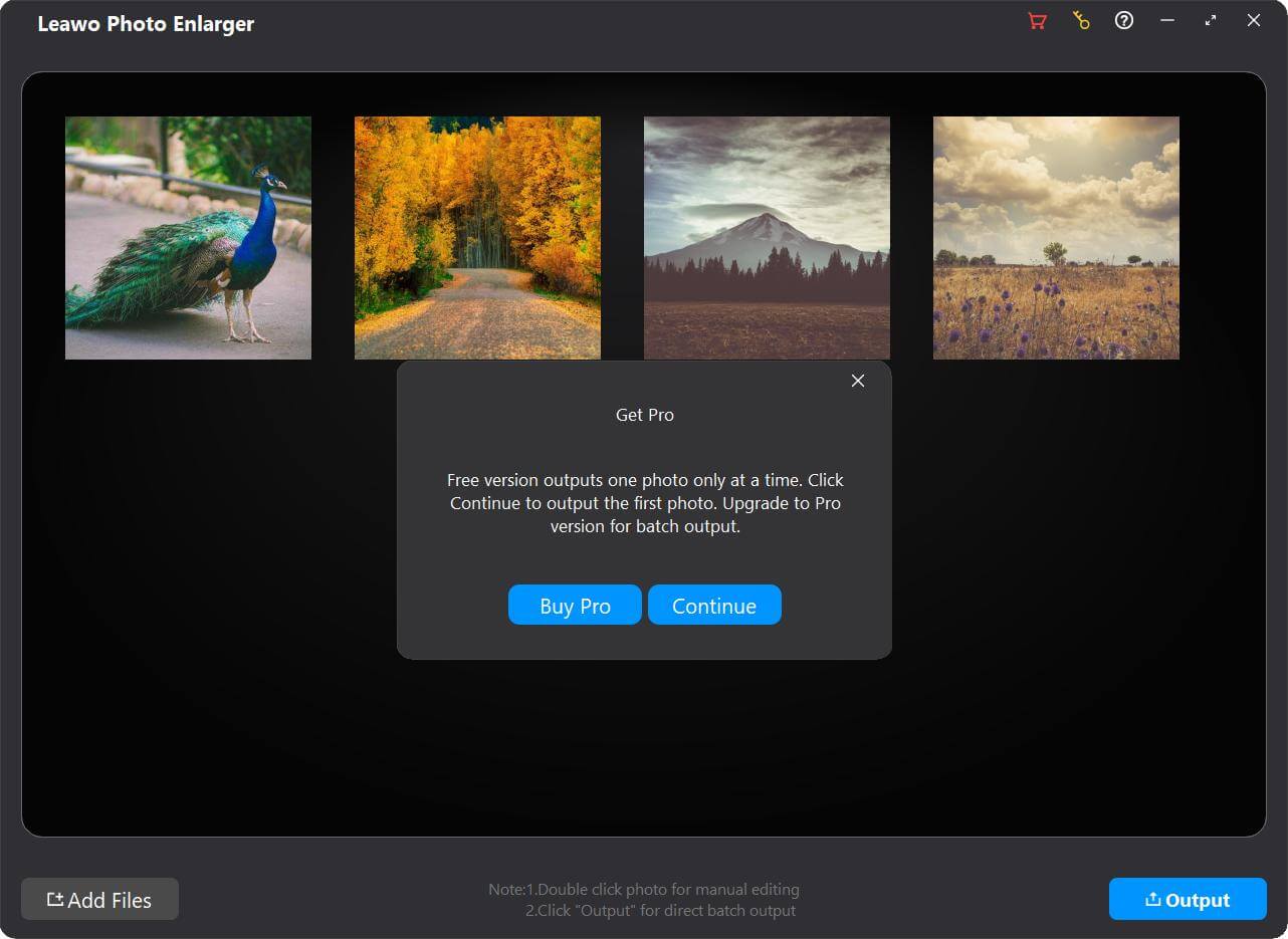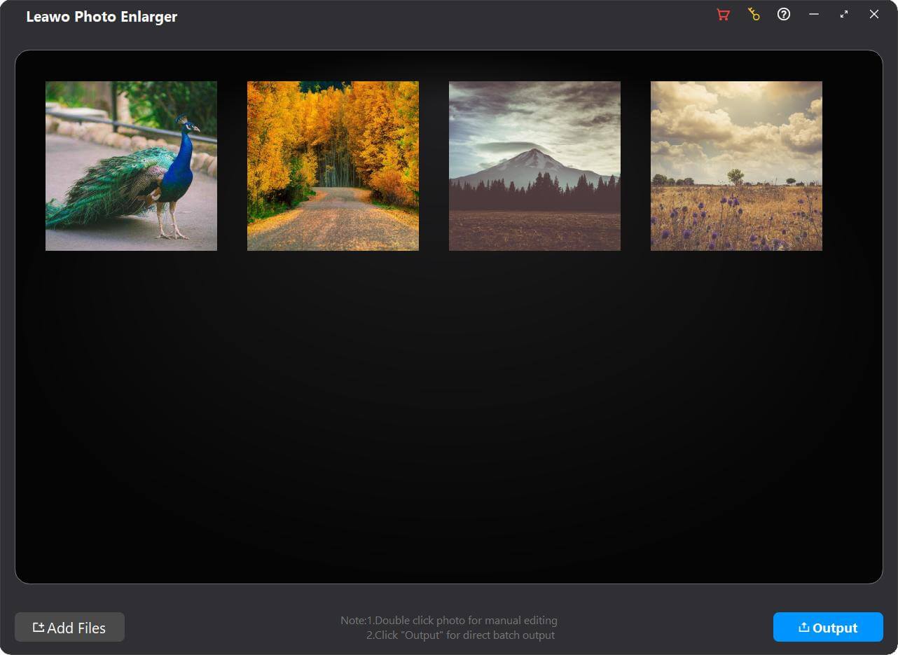 加载源照片后, Leawo 照片放大器可让您批量放大照片,或通过内部 AI 照片放大器逐张放大照片。