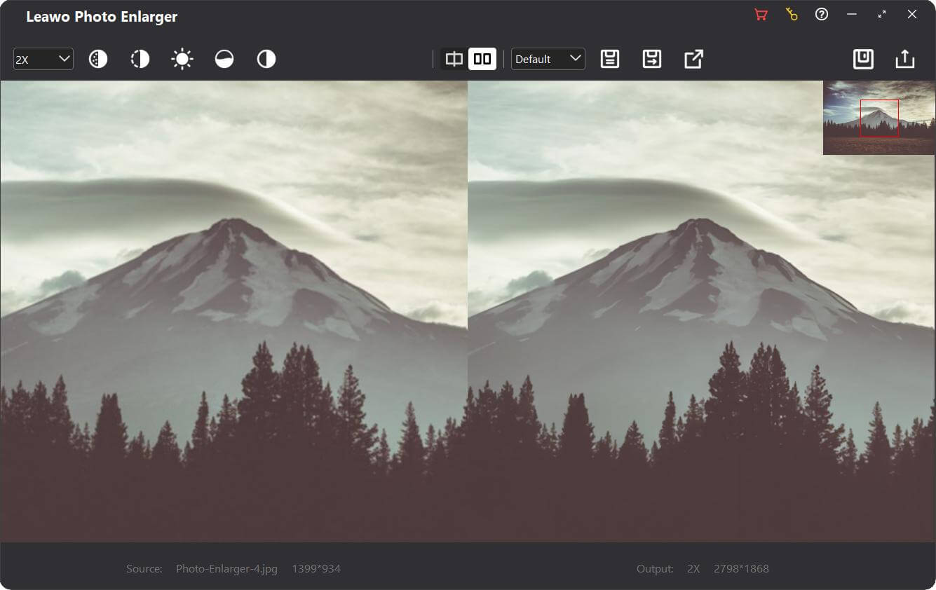 要逐张放大照片,请双击已加载的照片以进入工作台 Leawo 照片放大器,分为3个部分: