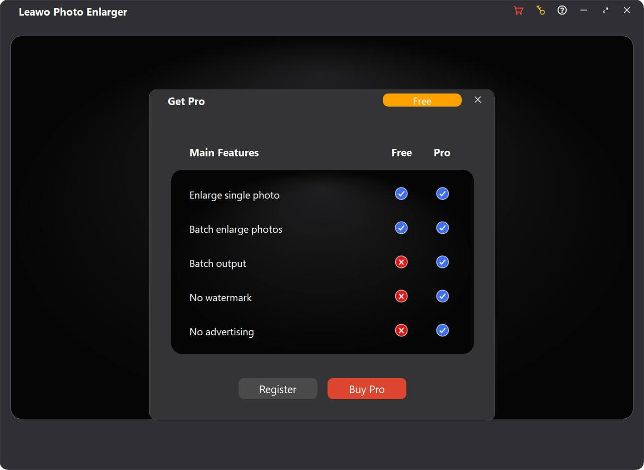 Leawo Photo Enlarger 有免费试用版和注册版,均可免费下载、安装和体验,不含恶意软件和间谍软件。但是,免费试用版、注册版和过期版之间存在一些差异。