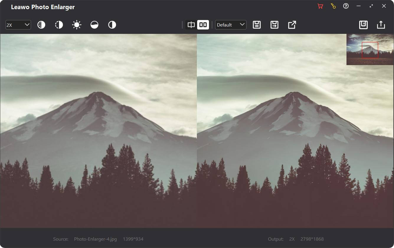 在深度学习AI技术的推动下, Leawo Photo Enlarger 提供全面而专业的 AI 照片放大解决方案,只需单击一下即可批量放大图像解决方案。除了简单地提高图像分辨率外,它还可以通过对比度和清晰度优化、噪音和雾气去除等方式增强照片质量。所有这些参数都可以手动调整。