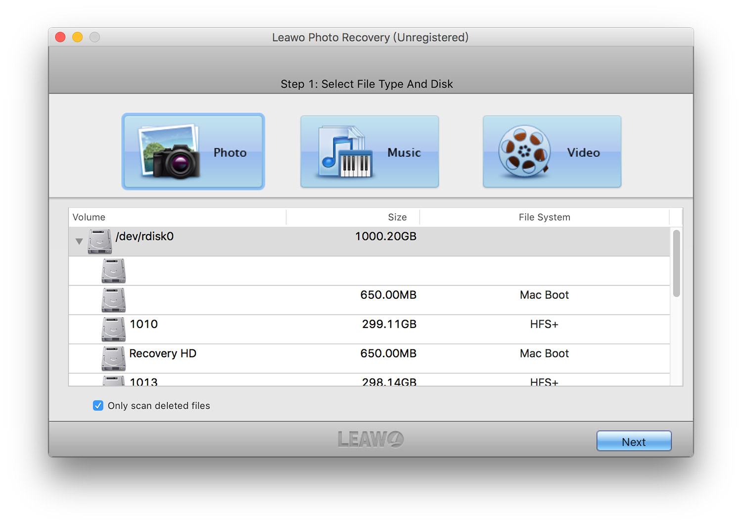 为了从硬盘驱动器和一系列其他存储设备中恢复更多丢失的媒体数据, Leawo Mac 版照片恢复软件兼容 HFS+、FAT16/32 和 NTFS/NTFS5 文件系统,最常见的硬盘驱动器和存储设备均配备这些文件系统。
