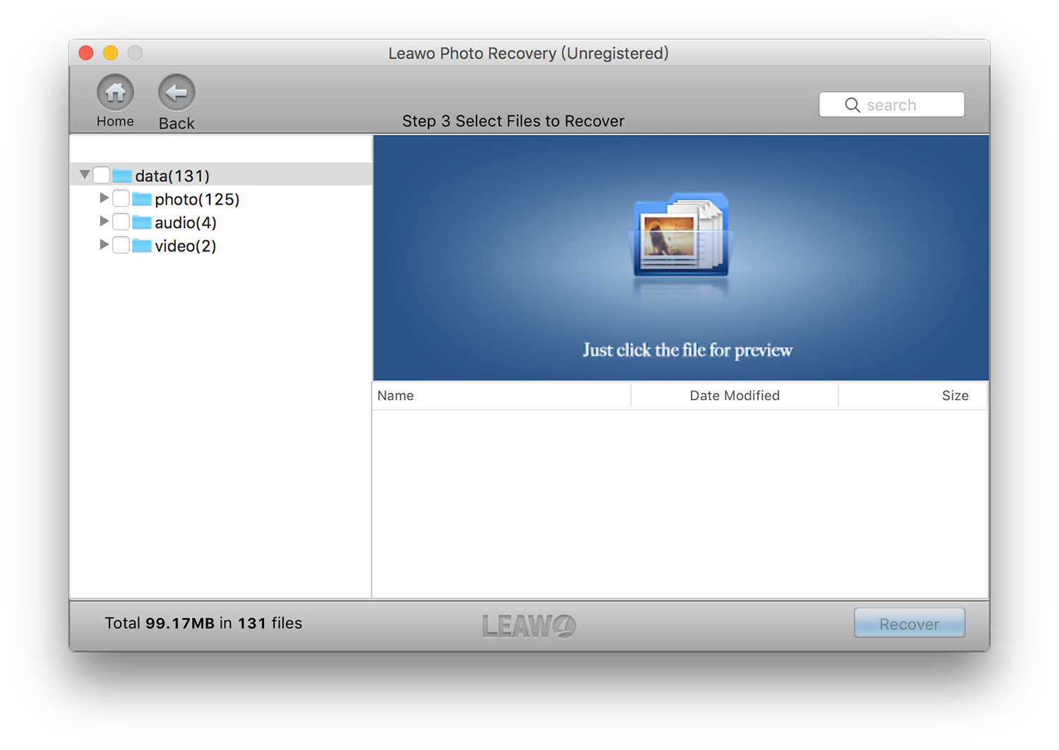 凭借强大的文件扫描和预览功能, Leawo Photo Reconvery for Mac 使用户能够轻松深入地分析所有丢失的媒体文件,然后获取恢复所需的精确文件。