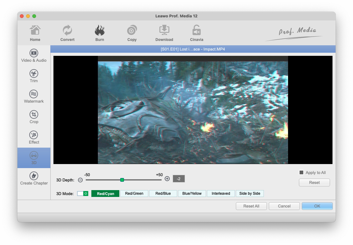 本指南是关于内部 2D 的使用 3D 内部转换器 Leawo Prof. Media 13 适用于Mac。您可以学习如何应用不同的 3D 使效果变得生动 3D 电影享受。