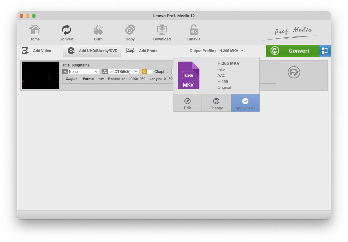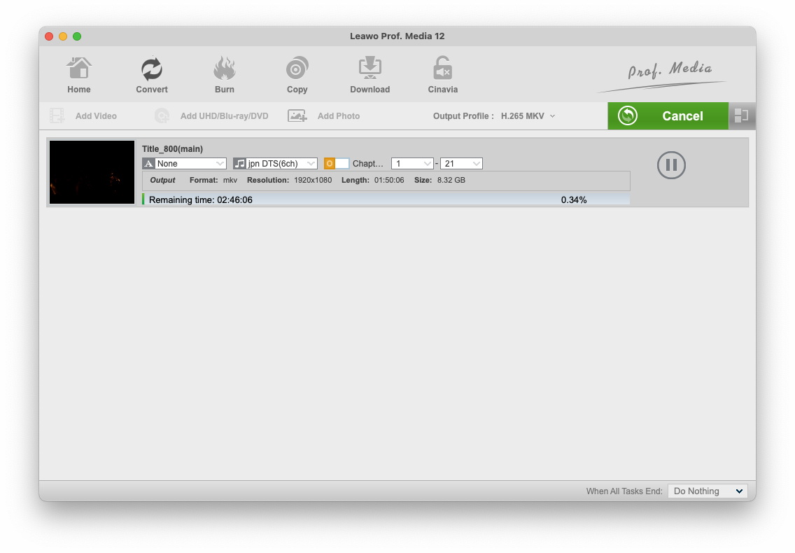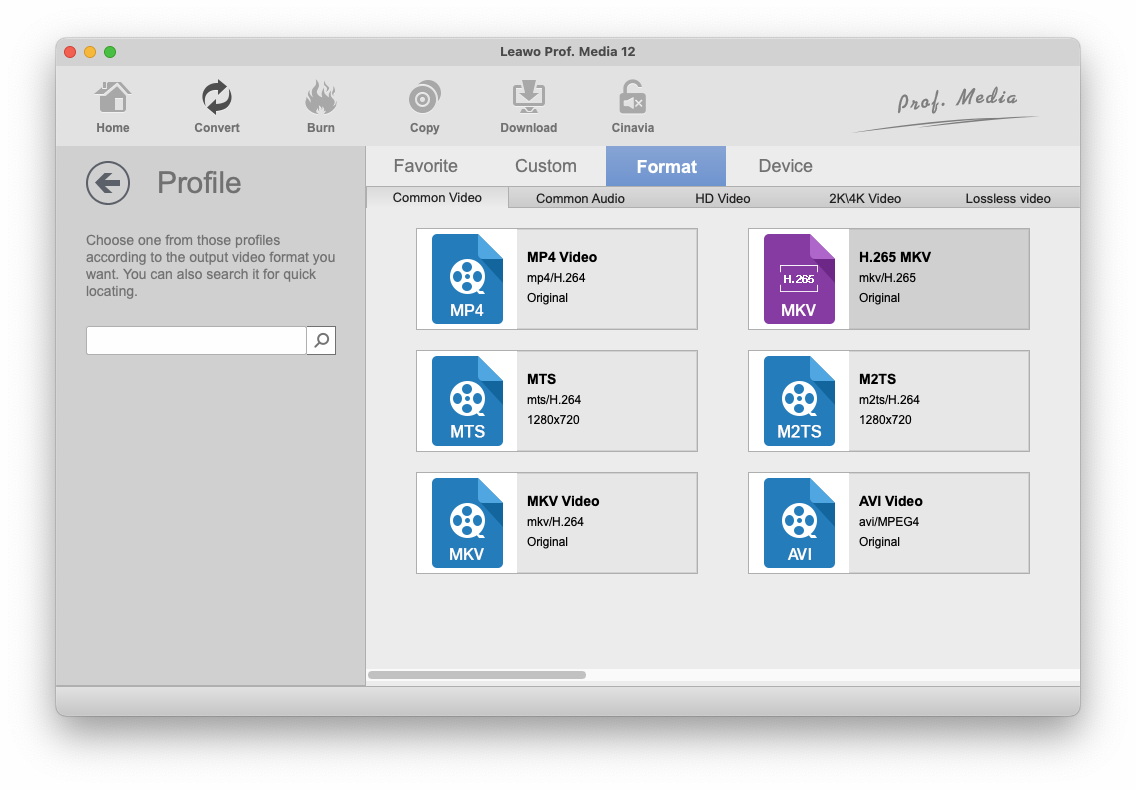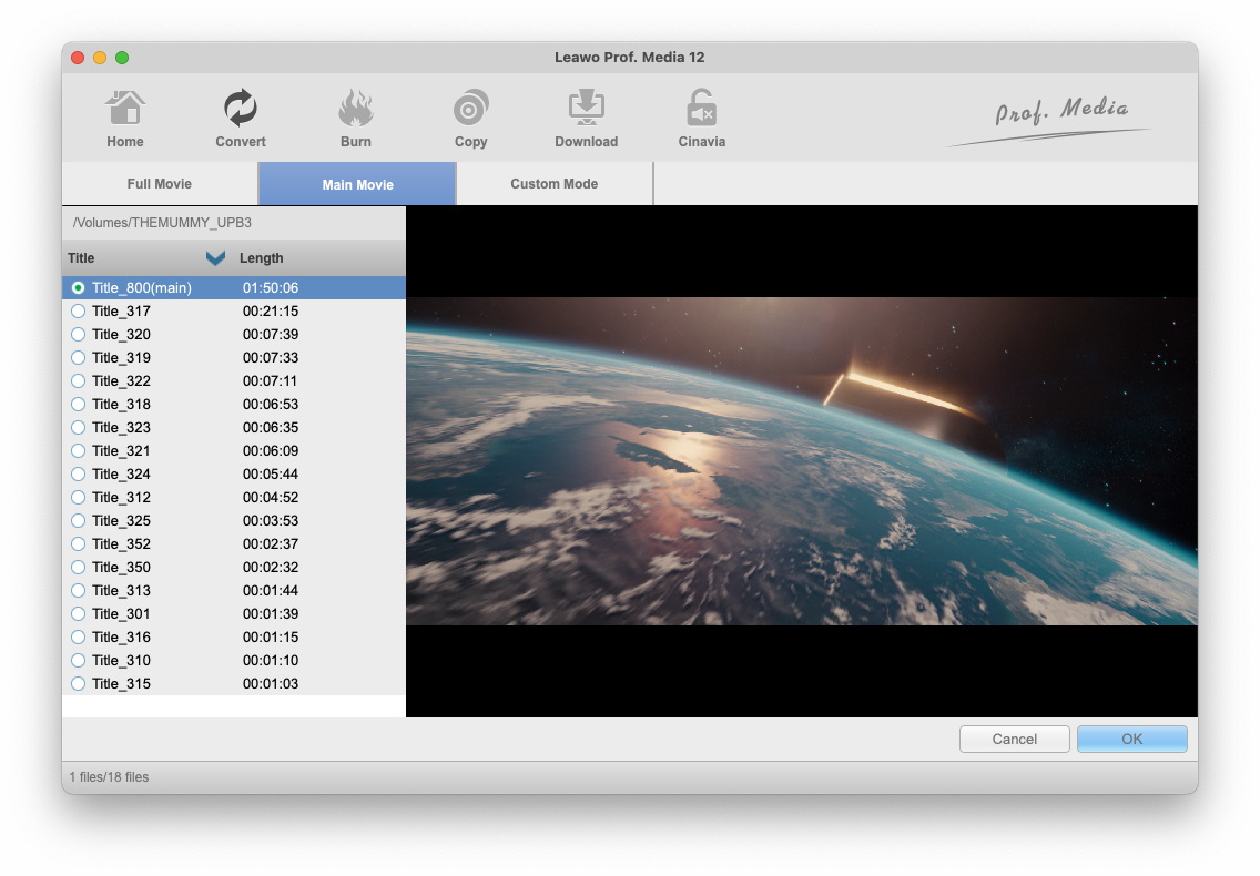 Leawo Prof. Media 13 Mac 版本包括几个不同的 4K 蓝光/蓝光/DVD处理模组和视讯转换器模组,可以帮助您将普通和多角度蓝光/DVD转换为普通视讯文件,并在不同格式之间转换视讯。看看如何转换 4K 以下内容中的蓝光/蓝光/DVD/影片。