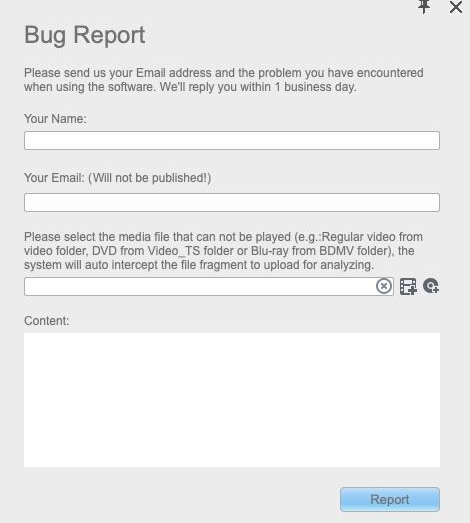 如果您在使用过程中发现任何bug Leawo Prof. Media 13 对于 Mac,请按一下 帮助 > 错误报告 将您的错误报告发送至 Leawo.