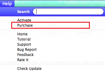 如果您没有启动注册码 Leawo Prof. Media 13 对于 Mac,请按一下 帮助 > 购买 造访注册码购买页面并取得程式的注册码。