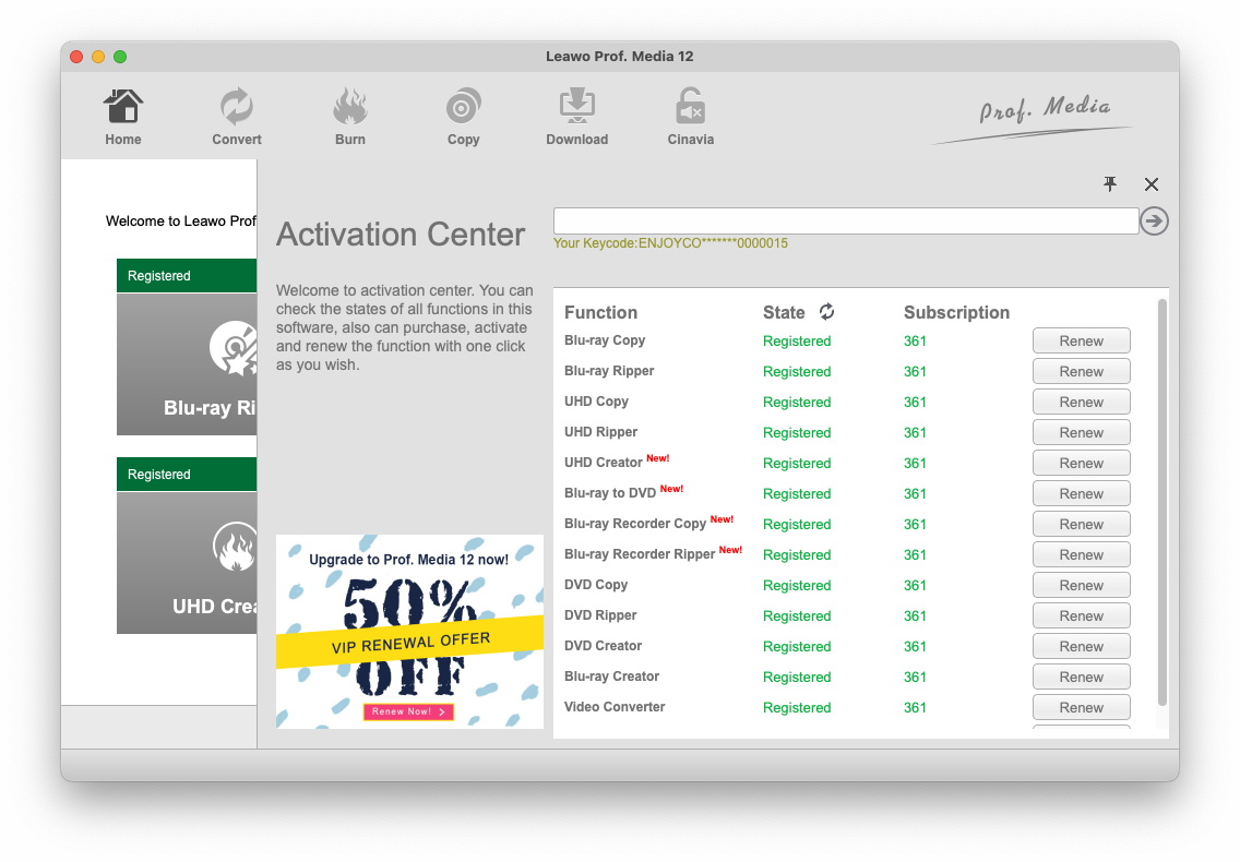 注册 Leawo Prof. Media 13 对于 Mac,首先您需要注册码。启动后点击选单列中的帮助 Prof. Media 13 对于 Mac,然后从以下选单中按一下「启动」。