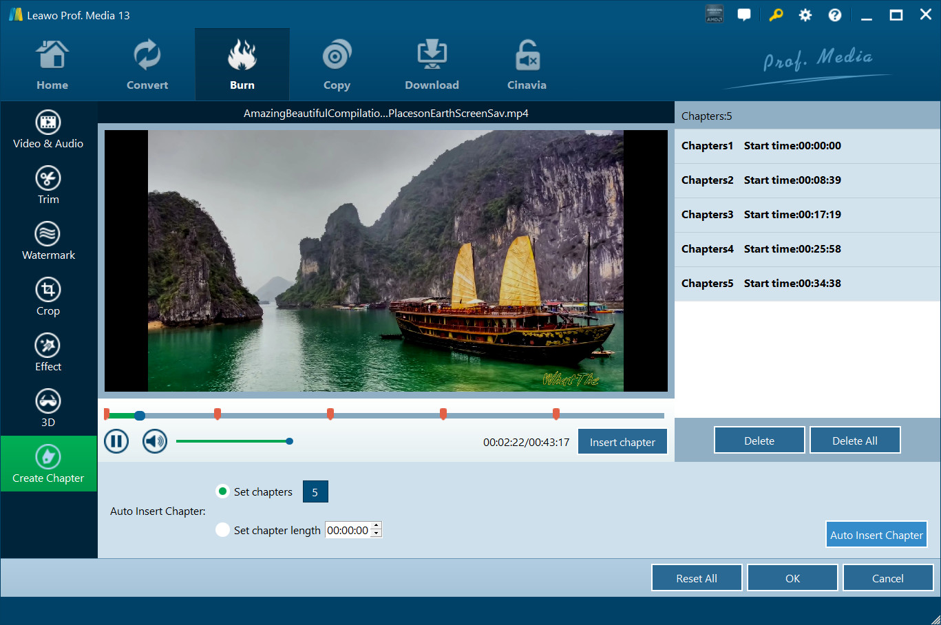 当您将视频刻录到蓝光或 DVD 时,会显示另一个额外的选项卡 创建章节