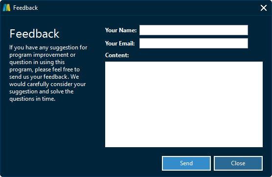 窗口中,您需要输入您的姓名和电子邮件地址,然后填写“内容”框以发送您的反馈。