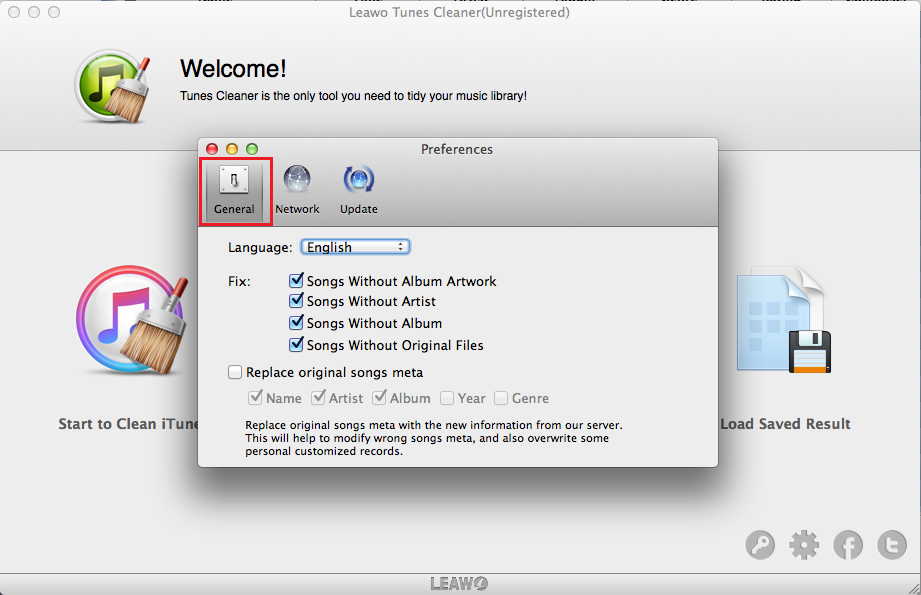 Leawo Tunes Cleaner 对于 Mac 偏好设置
