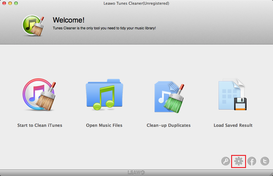 本页是关于程序设置的 Leawo Tunes Cleaner 适用于 Mac。设置 Leawo Tunes Cleaner 适用于 Mac,以便更好地清理 iTunes 音乐库和其他音乐库。