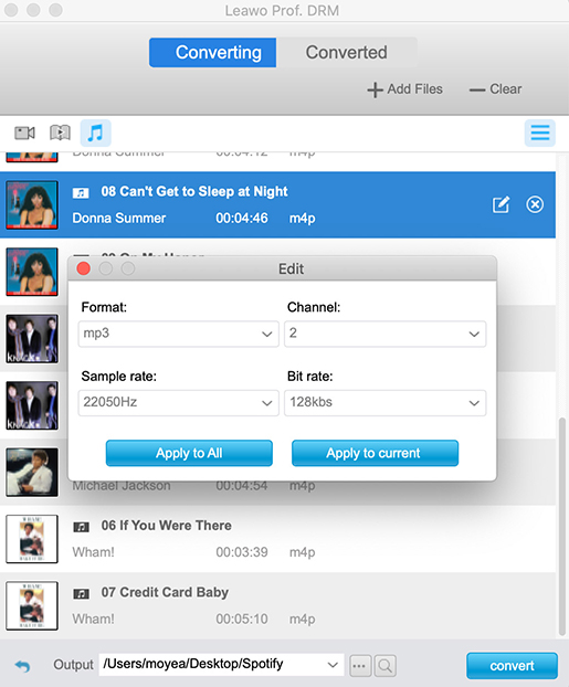Leawo Prof. DRM 适用于 Mac 的 iTunes 音乐转换器,具有删除 Mac 上的 iTunes DRM 保护并将 iTunes M4P 音乐歌曲转换为无 DRM 保护的功能 MP3 没有任何质量损失。它允许用户自由选择不同的通道、采样率和比特率以保持输出 MP3 文件。此外,该程序还会删除 iTunes DRM 并将 M4P 转换为 MP3 在 Mac 上以快 50 倍的速度运行,远远高于市场上其他类似的 iTunes 音乐破解器 Mac。