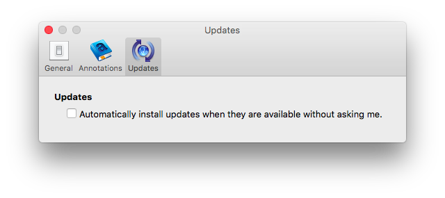 注: 如果您使用的APP已经升级到最新版本,请降级并重新下载您购买的书籍。请进入Kindle>偏好设置>更新,确保您已经取消自动更新选项。