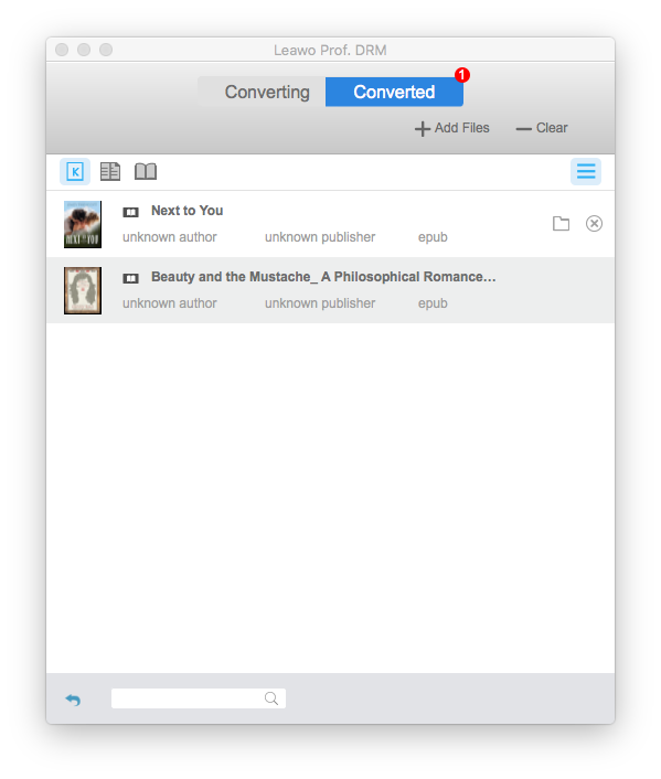 开球后 Leawo Prof. DRM 对于 Mac,您只需点击“添加文件”,然后点击“电子设备”上的刷新按钮。您将在右侧窗口中看到列出的书籍。