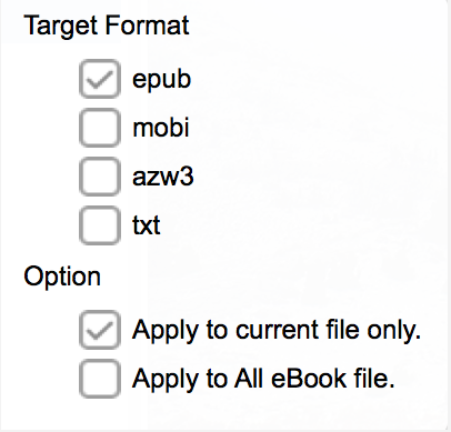 注: 同一框中有两个灵活的按钮供您选择。您可以点击“应用于当前”或“应用于全部”将设置应用于导入的电子书。