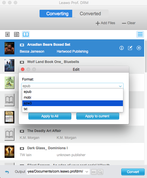 可在其他桌面APP或设备上自由阅读您喜爱的数字书籍。 Leawo Prof. DRM 适用于 Mac 的 可以帮助您从数字书籍中删除 DRM,然后转换为无 DRM 文件,如 epub、mobi、azw3、txt 等。更重要的是, Leawo Prof. DRM Mac 版可以在移除 DRM 后保留 100% 的原版质量。值得一提的是,该程序在移除 DRM 和保存为无 DRM 数字图书格式方面快了 50 倍。也就是说,您的受 DRM 保护的电子书将在几秒钟内完成转换。