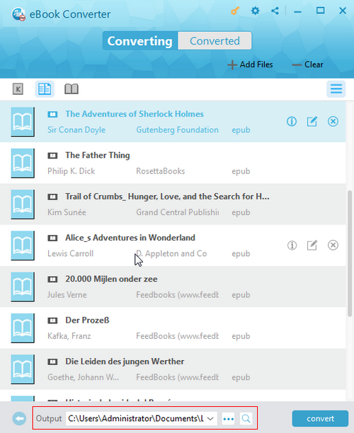 单击底部的“...”输出按钮,找到用于保存转换后的书籍的正确输出目录。