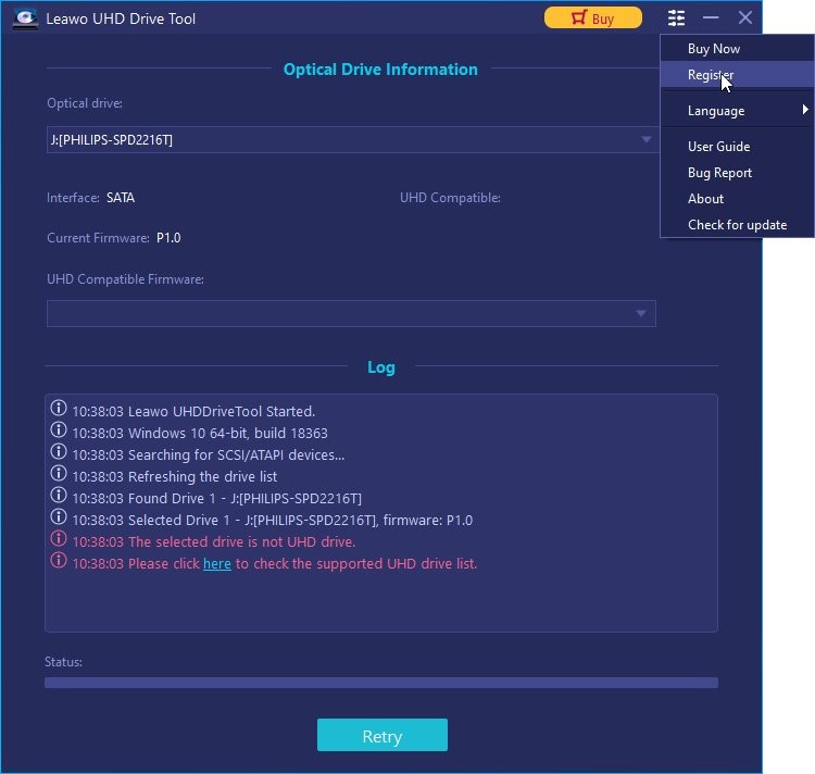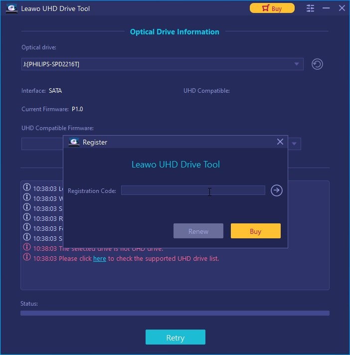 Leawo UHD Drive Tool 提供试用版和购买版。但请注意,人们无法在免费试用版中开始降级固件。为了开始降级过程,客户需要购买正式版并激活此程序。以下是有关如何注册的详细步骤 Leawo UHD 下面的驱动工具: