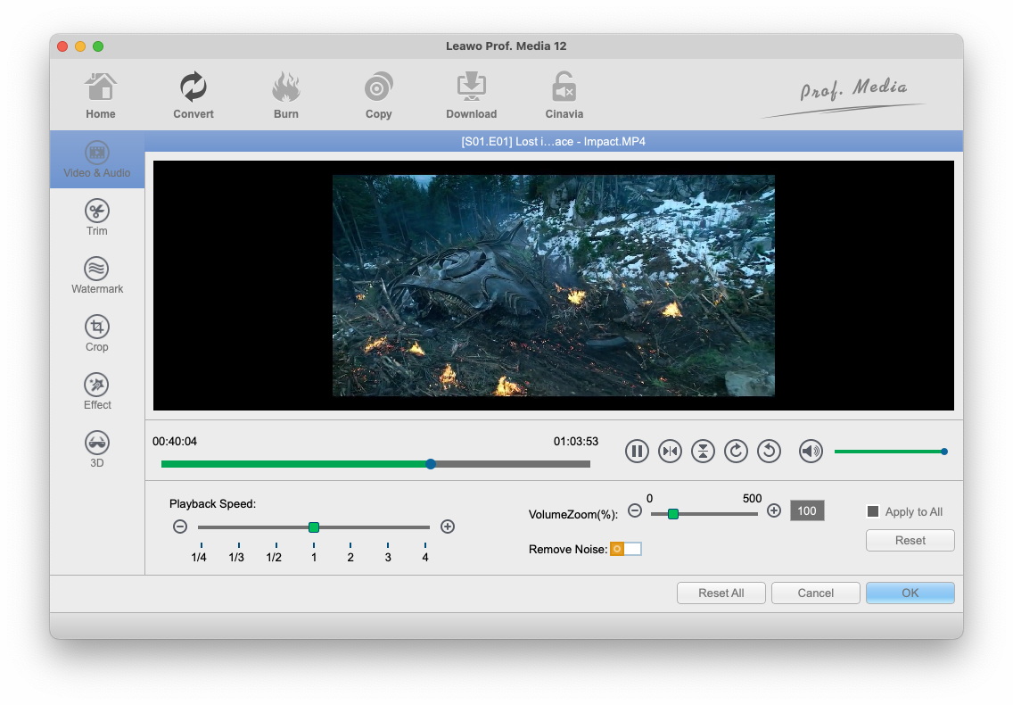 Leawo Mac 版视频转换器还可作为 2D 3D 视频转换器,因为它能够将 2D 视频转换器为 3D 有 6 种不同的 3D 可用的效果:红/青色、红/绿、红/蓝、蓝/黄、交错和并排。 3D 深度可调。