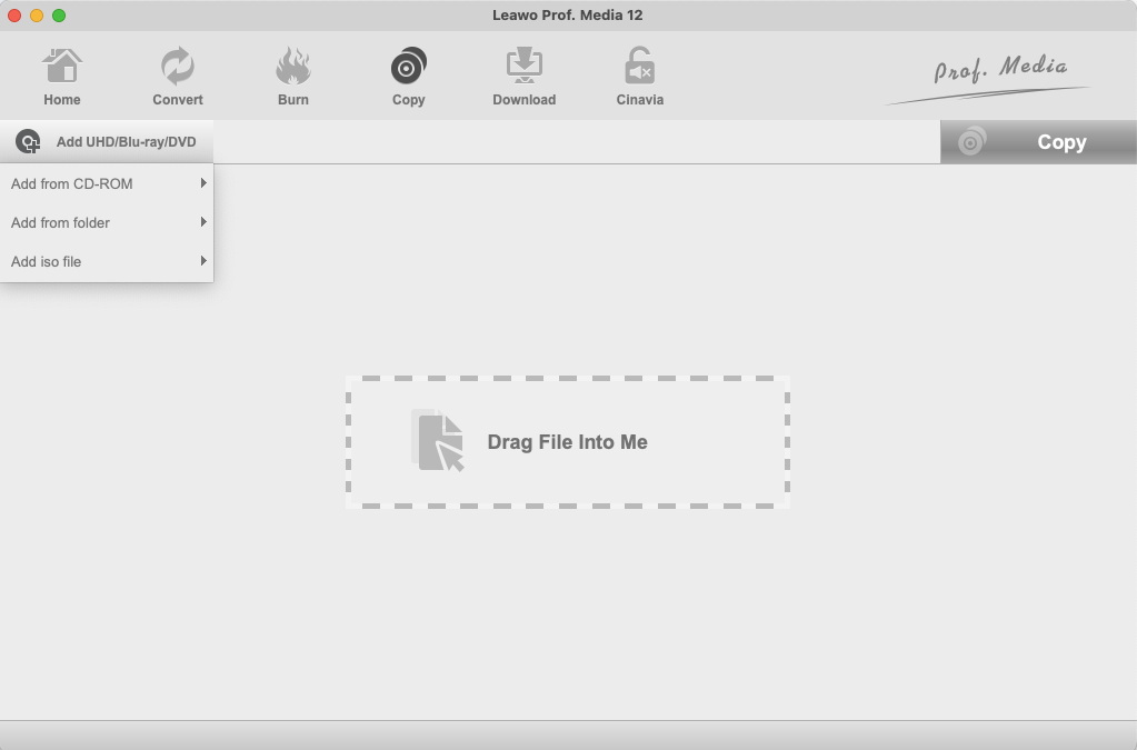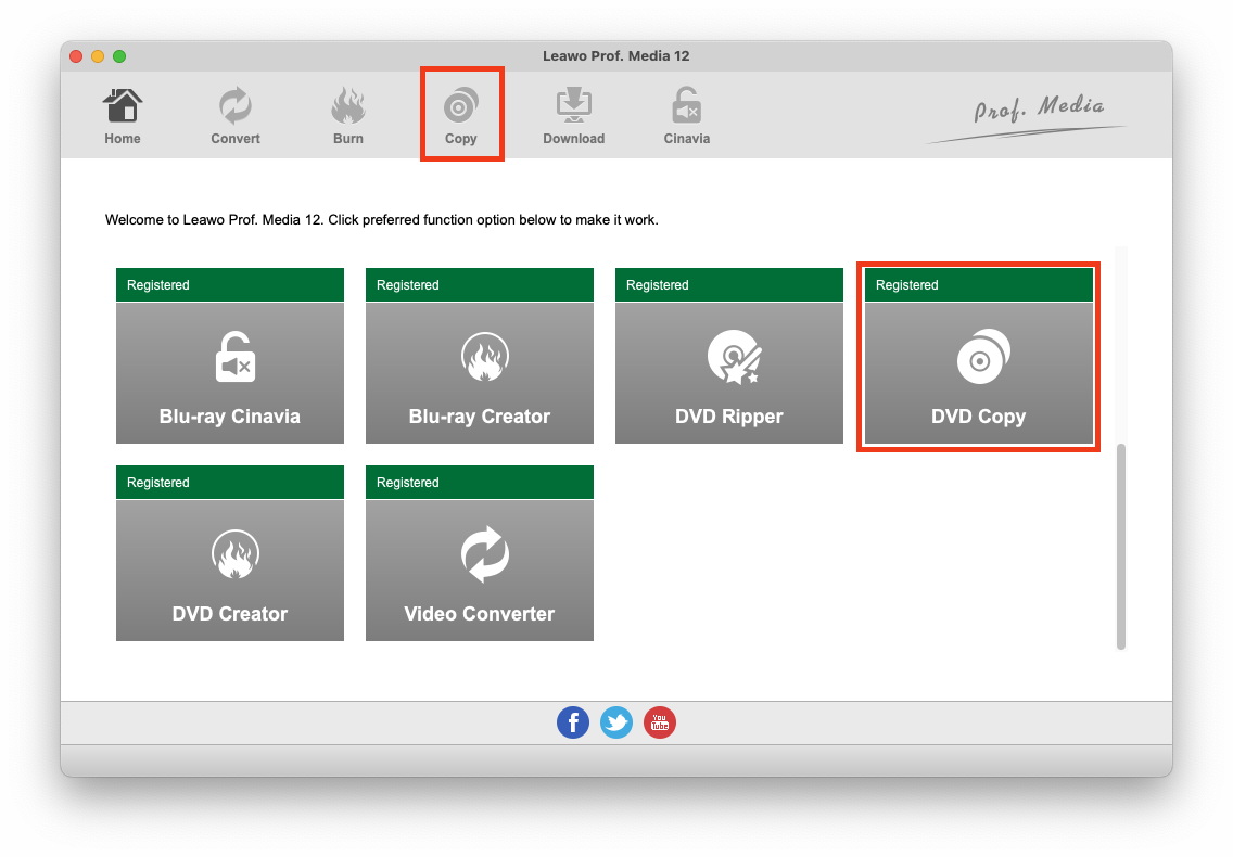 正式上线 Prof. Media 13 从启动板单击 DVD 复制快捷方式图标打开 Leawo 适用于 Mac 的 DVD 复制。