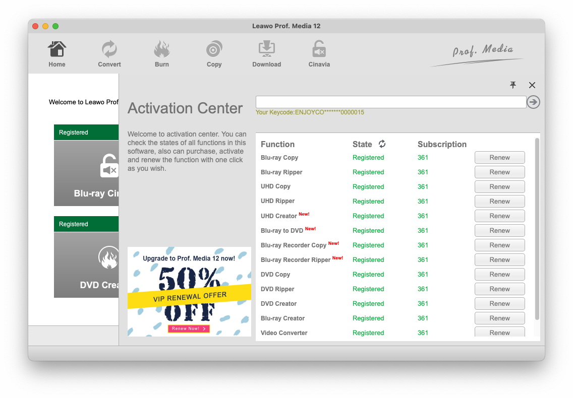 获取注册码后,您可以在框中输入注册码以激活所有其他可用功能。